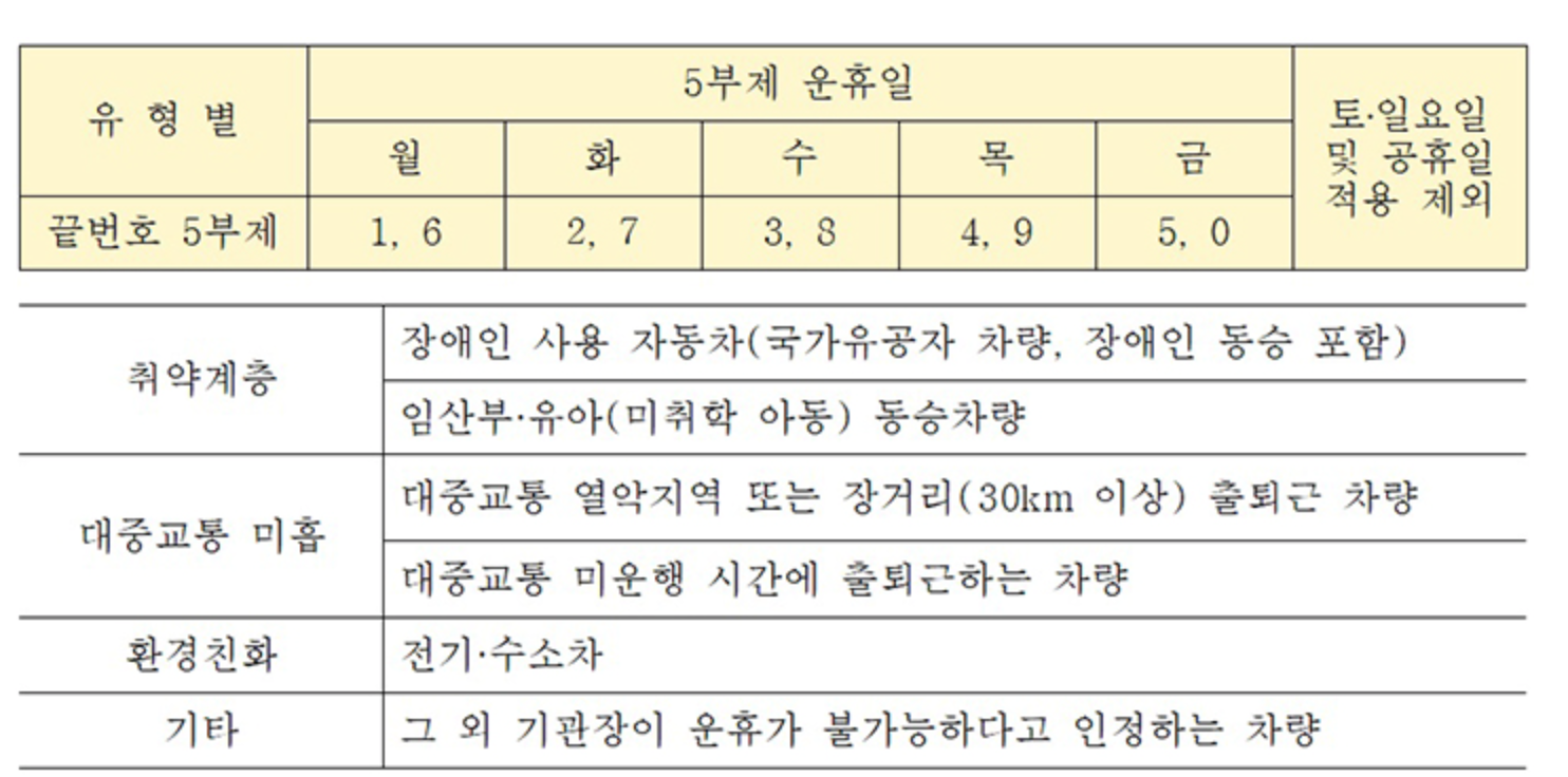 즉 공무원 및 공공기관 직원의 출퇴근 차량을 중심으로 적용되는 정책입니다.