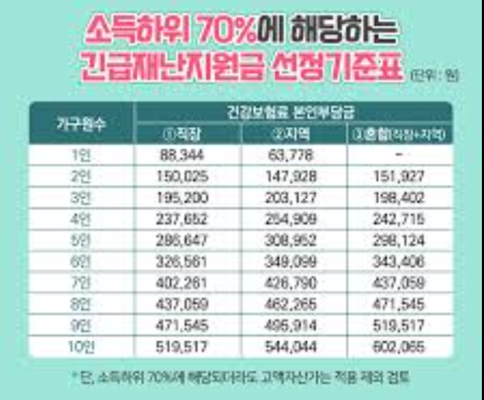 소득 하위 70% 기준금액은 단순 참고 수치가 아니라 지원금 대상 여부를 결정하는 핵심 기준입니다.