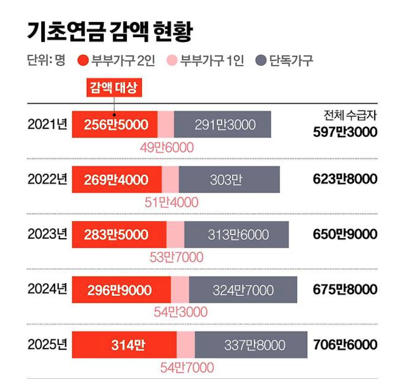 또한 부부가 함께 기초연금을 받는 경우에는 ‘부부 감액’까지 추가로 적용될 수 있어 실제 수령액이 더 줄어들 수 있습니다.